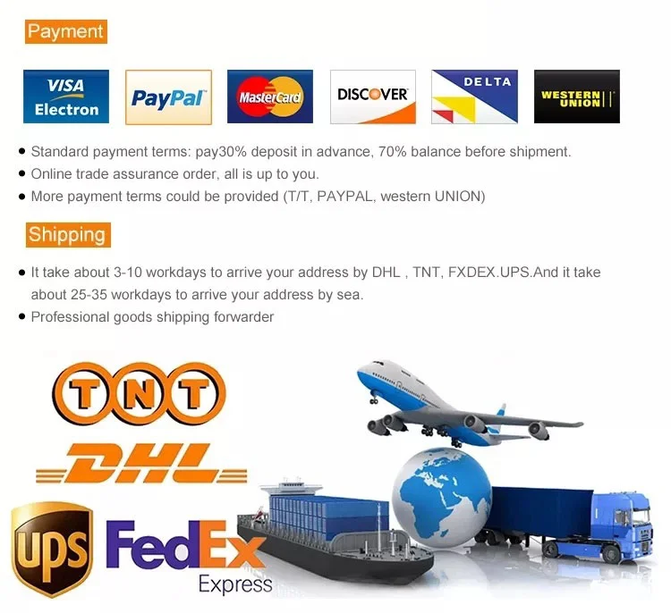 A: Usually we accept T/T, we also can accept Western Union and Trade Assurence.
